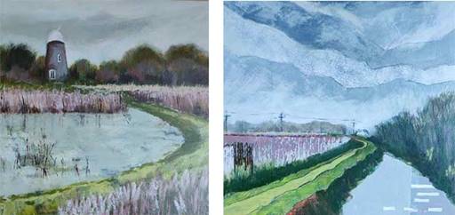 work is developed back in the studio. The FENLAND body of work seeks to capture the wild beauty of the Cambridgeshire wetlands. Helen’s art has been inspired by the whisper of the wind through the reeds, the wide open spaces, the historical features from the past and the subtle changes of colour in the landscape.