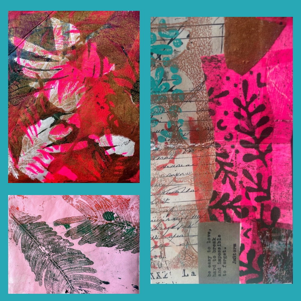 This workshop is suitable for beginners or anyone who would like to spend time experimenting with paint and printing and will introduce you to the delights of simple printing without a press using Gelli Plates. You may choose to bring some favourite leaves / flowers etc with you to print.