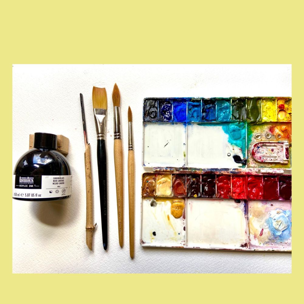 Combining inks with watercolours gives us more options to play with, focusing on linework, composition and texture.